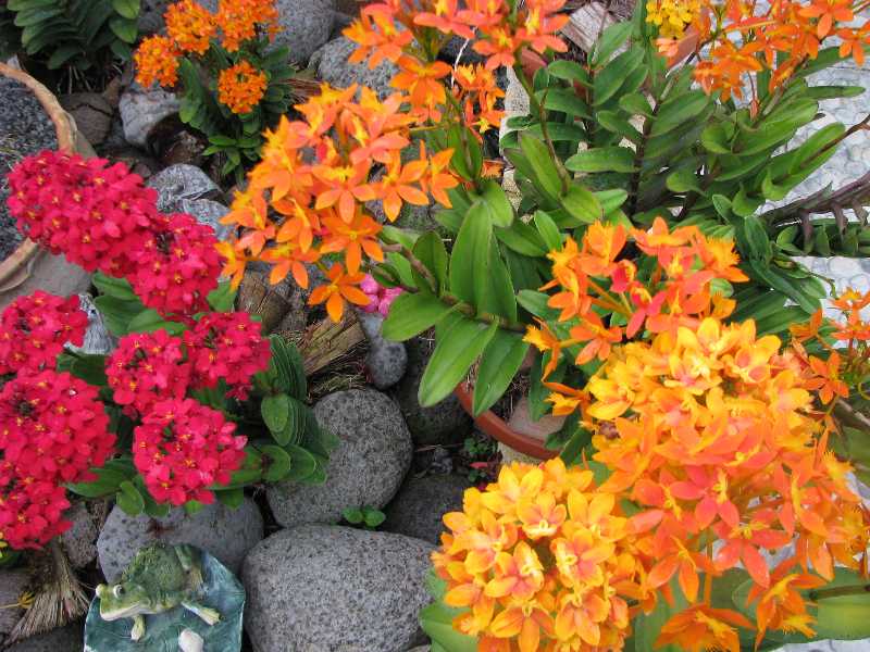 La visite à peine commencée, l’émerveillement se lit dans les regards devant des parterres d’orchidées fleuries et d’anthuriums, et à la vue de spectaculaires Cycas revoluta.